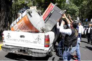 CIUDAD DE MÉXICO. 18FEBRERO2016.- La delegación Cuauhtémoc a través de la Dirección General Jurídica y de Gobierno llevaron a cabo acciones permanentes que permitan preservar el libre tránsito, y para tal efecto realizó este día un operativo para retirar todo tipo de artículos no permitidos en la vía pública en calles de la colonia Condesa. Autoridades señalaron que a diario se retiran entre 200 y 350 objetos que interfieren con la movilidad, desde artículos para apartar lugares, de servicios no autorizados de valet parking, y bancas que hacen uso indebido de la vía pública. FOTO: CUARTOSCURO.COM