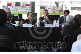 CIUDAD DE MÉXCIO, 20FEBRERO2016.- El periodista y ensayista Fernando Solana Olivares presentó su novedad literaria "Viernes" de la colección Periodismo Cultural de la Secretaría de Cultura. Compartió mesa con José Martínez Torres, prólogo insta de la obra, la poeta Pura López Colomé, y Miguel Ángel Pineda, del departamento de Comunicación Social de la Secretaría de Cultura. FOTO: MARÍA JOSÉ MARTÍNEZ /CUARTOSCURO.COM