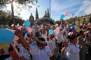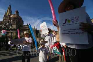 GUADALAJARA, JALISCO. 20FEBRERO2016.- Esta tarde cientos de personas se manifestaron en las Plazas de la Liberación, de Armas, Fundadores y Plaza Universidad, para protestar en contra de la legalización de los matrimonio entre personas del mismo sexo, simultaneamente un pequeño grupo de la comunidad Lésbico Gay realizaron lo propio para defender sus derechos y su convicción. FOTO : FERNANDO CARRANZA GARCIA / CUARTOSCURO.COM