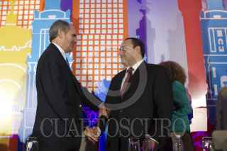 CIUDAD DE MÉXICO, 22FEBRERO2016.- Fernando Martí Brito, director general del Foro Nacional de Turismo, y Roberto Borge Angulo, gobernador de Quintana Roo, durante la inauguración del XIV Foro Nacional de Turismo CDMX 2016, que se realizó en un hotel de Polanco. FOTO. MOISÉS PABLO /CUARTOSCURO.COM