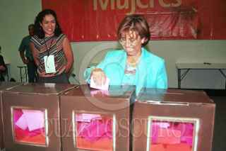 Rosario Robles y Amalia García, dirigente y exdirigente del PRD respectivamente, se saludan durante el VII Congrenso de este partido. FOTO: Juan Pablo Zamora/CUARTOSCURO.COM