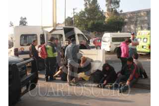 ECATEPEC, EDOMEX, 22FEBRERO2016.- Doce personas resultaron lesionados en un accidente vehicular a bordo de una unidad del transporte público de la Ruta 30, sobre la Vía Morelos a la altura de Santa Clara con dirección a Indios Verdes. El accidente ocurrió alrededor de las seis de la mañana y los mismos pasajeros acusaron al chofer iba hablando por teléfono celular cuando invadió el carril confinado del Mexibus y volcó sobre el costado izquierdo. FOTO: ARMANDO MONROY /CUARTOSCURO.COM