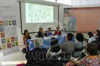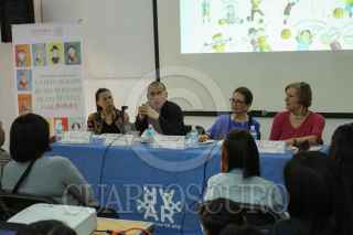 CIUDAD DE MÉXICO, 22FEBRERO2016.- Marcela Romero, Juan Carlos Quezadas, Susana Ríos Szalay y Cristina Urrutia, escritores de literatura para niños, durante la presentación del libro "La declaración de los derechos de los niños y las niñas", como parte de las actividades del la 37 edición de la Feria Internacional del Libro del Palacio de Minería. FOTO: ADOLFO VLADIMIR /CUARTOSCURO.COM