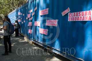 CIUDAD DE MÉXICO, 23FEBRERO2016.- Ciudadanos clausuraron simbólicamente las obras de construcción de la Rueda de la Fortuna que se construye en la Primera Sección del Bosque de Chapultepec. FOTO: ISAAC ESQUIVEL /CUARTOSCURO.COM