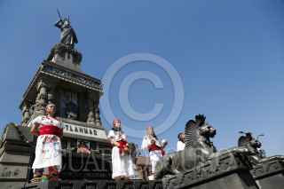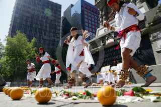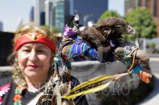 CIUDAD DE MÉXICO, 23FEBRERO2016.- Con motivo del 520 aniversario del natalicio del Último Tlatoani Mexica "el Emperador Cuauhtémoc", se realizó una ceremonia con danzas prehispánicas y se colocó una corona de flores para homenajear al gran guerrero al pie de su monumento, en avenida Paseo de la Reforma. FOTO: JOSÉ ROBERTO GUERRA / CUARTOSCURO.COM