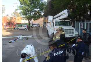 CIUDAD DE MÉXICO, 23FEBRERO2016.- Dos hombres murieron electrocutados cuando colocaban un poste de fierro en el estacionamiento de Manzana número10 en la unidad habitacional Villas Centroamericanas, ubicada en la avenida Gabriela Mistral casi con canal nacional en Tlahuac. FOTO: ARMANDO MONROY /CUARTOSCURO.COM
