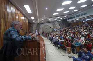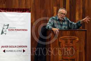 GUADALAJARA, JALISCO, 24FEBRERO2016.- El Poeta y Activista Social, Javier Sicilia, impartió una conferencia magistral denominada “Rumbo a la Paz”, esto en el marco de la Cátedra Elena Poniatowska, Política y Sociedad que Organiza la Federación de Estudiantes Universitarios (FEU) de la Universidad de Guadalajara; dicho evento se llevo a cabo en el Auditorio Salvador Allende del Centro Universitario de Ciencias Sociales y Humanidades (CUCSH) de ya mencionada casa de estudios. FOTO : FERNANDO CARRANZA GARCIA / CUARTOSCURO.COM