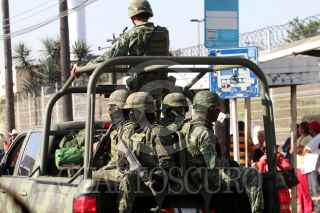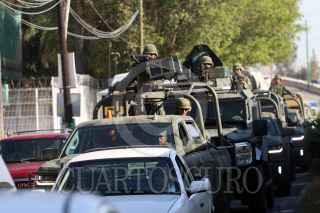 TLAQUEPAQUE, JALISCO. 25FEBRERO2016.- Personal de la Sedena y Fuerza Única patrullan el municipio para reforzar la seguridad en la zona, esto tras el ataque perpetrado el día de ayer al Director Operativo de la Comisaria de Tlaquepaque, Francisco Javier Alejo Rodríguez y sus dos escoltas, mismos que perdieron la vida. FOTO : FERNANDO CARRANZA GARCIA / CUARTOSCURO.COM