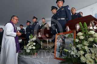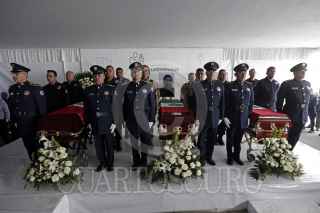 TLAQUEPAQUE, JALISCO. 26FEBRERO2016.- Esta mañana en las instalaciones de la corporación de Seguridad Ciudadana de Tlaquepaque, se llevo a cabo un homenaje de cuerpo presente a los oficiales caídos, Francisco Javier Alejo Rodríguez Director Operativo de la corporación y sus dos escoltas, Daniel Río Chávez y Jesús Hernández Centeno, esto tras ser emboscados por hombres armados abordo de una camioneta el pasado miércoles. FOTO : FERNANDO CARRANZA GARCIA / CUARTOSCURO.COM