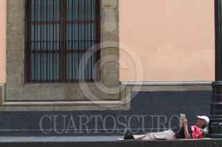 CIUDAD DE MÉXICO, 28FEBRERO2016.- Un hombre lee plácidamente acostado sobre un cartón y su refresco en la calle Xicoténcatl, en el Centro Histórico. FOTO: MOISÉS PABLO /CUARTOSCURO.COM