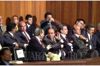 Carlos Romero Deschamps, acudió al Consejo Político Nacional del PRI. En declaraciones, Deschamps aseguro que tiene el apoyo de su partido en el escandalo de desvío de fondos del sindicato de trabajadores de PEMEX. FOTO: Pedro Mera/CUARTOSCURO.COM