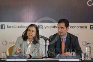 CIUDAD DE MÉXICO, 29FEBRERO2016.- Alejandra Palacios Prieto, Presidenta de la Comisión Federal de Competencia Económica, y Carlos Mena Labarthe, Titular de la Autoridad Investigadora, expusieron el dictamen preliminar sobre las condiciones de competencia, existentes en los procedimientos de despegue y aterrizaje del Aeropuerto Internacional de la Ciudad de México. FOTO: TERCERO DÍAZ /CUARTOSCURO.COM