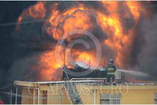 TLALNEPANTLA, ESTADO DE MÉXICO, 29FEBRERO2016.- Un fuerte incendió se suscitó en una fábrica de madera y cartón, en la avenida Tenayuca, fueron desalojados más de 1500 personas entre ellos unos perros que se encontraba en la azotea de una casa que amenazaba con incendiarse. FOTO: ARMANDO MONROY /CUARTOCURO.COM