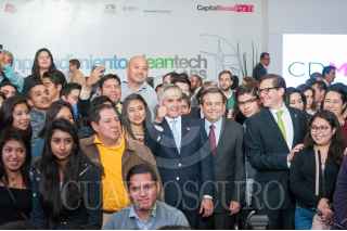 CIUDAD DE MÉXICO, 01MARZO2016.- Asistentes observan un auto eléctrico durante el lanzamiento del centro de innovación y escalamiento comercial para empresas de tecnología limpia Cleantech labs, en la delegación Azcapotzalco. FOTO: DIEGO SIMÓN SÁNCHEZ /CUARTOSCURO.COM