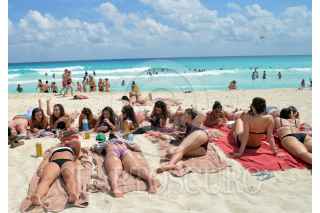 CANCUN, QUINTANA ROO, 01MARZO2016.- El sector hotelero de este destino turístico espera una ocupación del 95 por ciento durante la temporada de "spring break", sector que gasta hasta mil 500 dólares por persona en su estadía de cinco días, jóvenes principalmente estadounidenses y canadienses comienzan a llegar a las playas de Cancún. FOTO: ELIZABETH RUIZ /CUARTOSCURO.COM