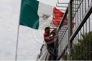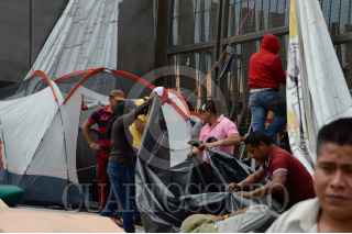 CHILPANCINGO, GUERRERO, 01MARZO2016.- Policías estales acreditables que mantenían un plantón frente al Palacio de Gobierno desde la administración del gobernador interino Rogelio Salvador Ortega se retiraron, no sin antes señalar que “La lucha la seguiremos a través de las intuiciones”. FOTO: JOSÉ I. HERNÁNDEZ / CUARTOSCURO.COM