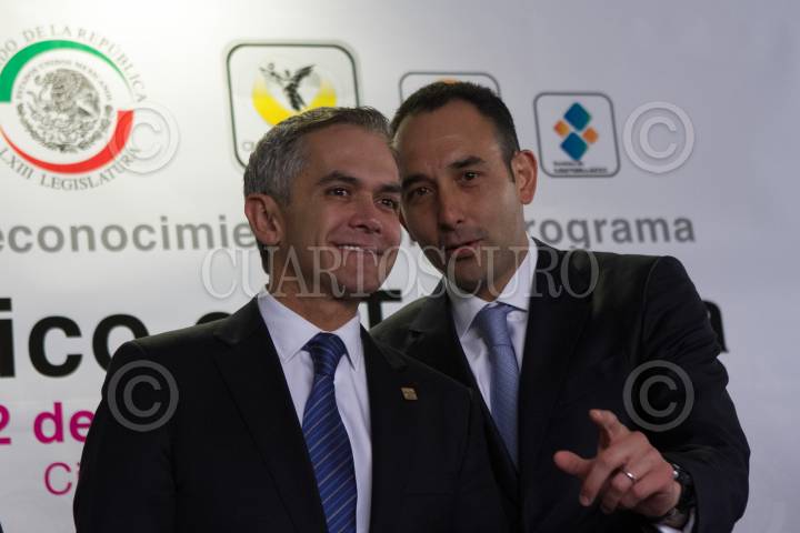 CIUDAD DE MÉXICO, 02MARZO2016.- Miguel Ángel Mancera, Jefe de Gobierno de la Ciudad de México, y Roberto Gil Zuarth, presidente del Senado de la República, durante la ceremonia en la cual se reconoció a la ciudad por el programa social "El Médico en Tu Casa" , en el Senado de la República. Este programa ha sido replicado en varios estados e inclusive países. FOTO: MOISÉS PABLO /CUARTOSCURO.COM