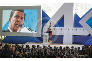 SILAO, GUANAJUATO, 03MARZO2016.- Miguel Márquez Márquez, gobernador del estado, presentó su cuarto informe de gobierno ante cientos de invitados en el parque bicentenario, entre los que destacaron Miguel Ángel Mancera, jefe de gobierno de la Ciudad de México; Diego Fernández de Ceballo; Rafael Moreno Valle, gobernador de Puebla, Ricardo Anaya, presidente nacional del PAN, entre otros. FOTO: GUSTAVO BECERRA /CUARTOSCURO.COM