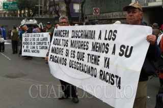 CIUDAD DE MÉXICO, 03MARZO2016.- Integrantes del Sindicato Único de Trabajadores de Autotransportes Urbanos de Pasajeros Ruta 100 se manifestaron en las inmediaciones de la Secretaría de Gobernación, los inconformes piden las liquidaciones de 12 mil personas que perdieron su empleo hace 20 años tras el quiebre de la empresa y repudiaron al Jefe de Gobierno de la Ciudad de México Miguel Ángel Mancera que los manda a reprimir a través del cuerpo de granadero. FOTO: MOISÉS PABLO /CUARTOSCURO.COM