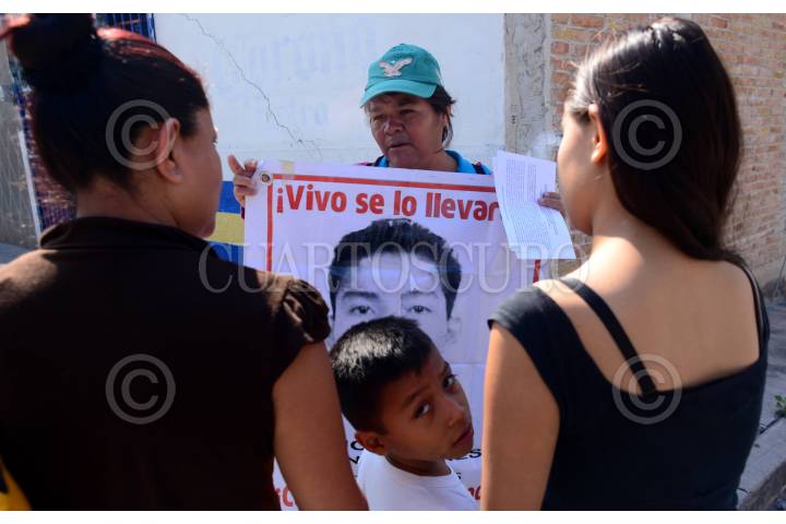 IGUALA, GUERRERO, 05MARZO2016.- Finalizó la segunda jornada de búsqueda de información en las colonias del municipio. Padres de los 43, estudiantes normalistas e integrantes de organizaciones sociales recorrieron las calles para pegar carteles y repartir volantes a los igualtecas solicitando información, se instalaron también urnas en varios puntos de la ciudad para que las personas puedan depositar de forma escrita cualquier testimonio que pueda ayudar a esclarecer el caso de los 43 normalistas de Ayotzinapa. FOTO: ISABEL MATEOS /CUARTOSCURO.COM