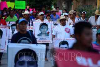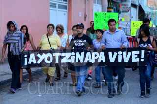 IGUALA, GUERRERO, 05MARZO2016.- Para finalizar las actividades de la búsqueda de información en las colonias del municipio, los padres de los 43, estudiantes normalistas e integrantes de organizaciones sociales realizaron una marcha pacífica que partió del lugar donde dos de los jóvenes fueron asesinados con rumbo a la Plaza de las tres garantías. FOTO: ISABEL MAT OS /CUARTOSCURO.COM