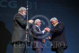 GUADALAJARA, JALISCO. 05MARZO2016.- El actor estadounidense Ron Perlman fue reconocido por su trayectoria en el cine mundial y recibió de manos de Raúl Padilla López, Presidente del Patronato del FICG y de Iván Trujillo Bolio, Director del Festival, el Premio Mayahuel de Plata, esto en el marco de la 31 edición del Festival Internacional de Cine en Guadalajara (FICG), dicho evento tuvo lugar en el Teatro Diana. FOTO : FERNANDO CARRANZA GARCIA / CUARTOSCURO.COM