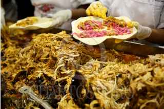MÉRIDA, YUCATÁN, 06MARZO2016.- Yucatán recuperó el Récord Guinness con la cochinita pibil más grande del mundo, guiso en la cual se utilizaron más de seis mil 600 kilogramos de carne de cerdo y miles de personas degustaron de manera gratuita el platillo, servido en una mega lata de 50 metros de largo. Evelyn Carrera, representante de Guinness World Records fue la encargada de dar lectura a la cantidad total del guiso, que fue de seis mil 626.15 kilogramos para que este platillo regional integre nuevamente a Yucatán en la familia de los Récords Guinness. FOTO: FRANCISCO BALDERAS /CUARTOSCURO.COM