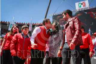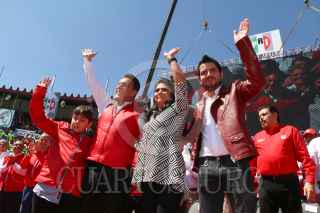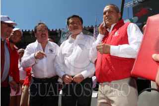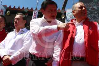 PACHUCA, HIDALGO, 06MARZO2016.- Emilio Gamboa, Miguel Angel Osorio Chong y Manlio Fabio Beltrones asistieron a la toma de de protesta de Omar Fayad como candidato de PRI a la gubernatura de Hidalgo. FOTO: SAÚL LÓPEZ /CUARTOSCURO.COM