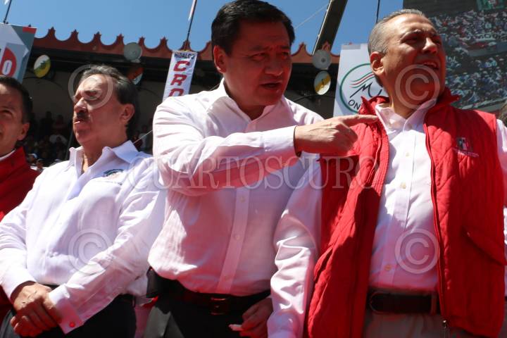 PACHUCA, HIDALGO, 06MARZO2016.- Emilio Gamboa, Miguel Angel Osorio Chong y Manlio Fabio Beltrones asistieron a la toma de de protesta de Omar Fayad como candidato de PRI a la gubernatura de Hidalgo. FOTO: SAÚL LÓPEZ /CUARTOSCURO.COM