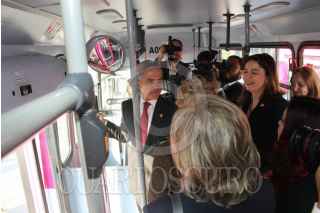 CIUDAD DE MÉXICO, 07MARZO2016.- Miguel Ángel Mancera, jefe de Gobierno de la Ciudad de México, entregó 50 unidades rehabilitadas de transporte preferencial para mujeres y niñas que formarán parte del servicio Atenea, de la Red deTransporte de Pasajeros (RTP). El servicio tiene una tarifa de dos pesos y es gratuito para mujeres embarazadas, adultos mayores, niños menores de cinco años y personas con discapacidad. FOTO: CDMX /CUARTOSCURO.COM