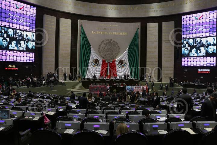 CIUDAD DE MÉXICO, 08MARZO2016.- Diputadas de la fracción de MORENA se manifestaron con mantas en el pleno de la cámara de diputados en memoria de mujeres asesinadas así como el trato desigual que viven la mujeres en diversos sectores de la sociedad. FOTO: SAÚL LÓPEZ /CUARTOSCURO.COM