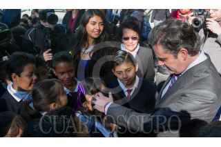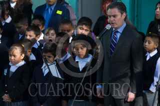 CIUDAD DE MÉXICO, 08MARZO2016.- El secretario de Educación Pública Aurelio Nuño Mayer conversa con los alumnos de la escuela República Dominicana, al finalizar la ceremonia cívica que encabezó en este centro educativo. FOTO: MOISÉS PABLO /CUARTOSCURO.COM