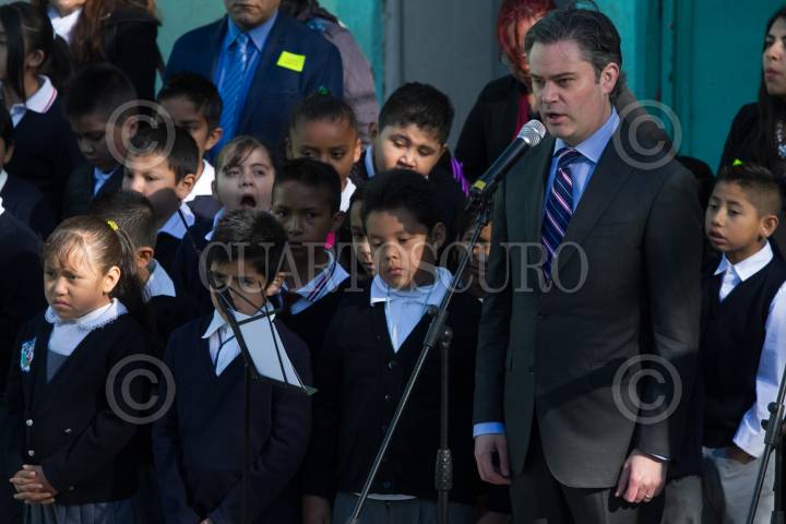 CIUDAD DE MÉXICO, 08MARZO2016.- El secretario de Educación Pública Aurelio Nuño Mayer conversa con los alumnos de la escuela República Dominicana, al finalizar la ceremonia cívica que encabezó en este centro educativo. FOTO: MOISÉS PABLO /CUARTOSCURO.COM