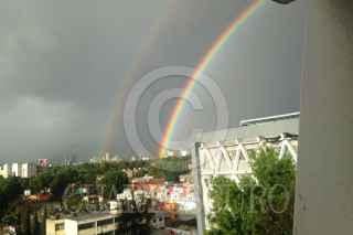 CIUDAD DE MÉXICO, 09MARZO2016.- Debidos a los fuertes vientos, rachas de lluvias y tímidas salidas del sol por la maña se pudieron observar un par de arcoiris sobre los cielos de la capital. FOTO: ADRIANA ÁLVAREZ /CUARTOSCURO.COM