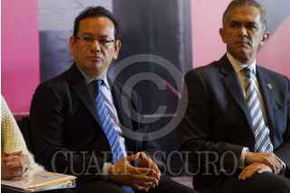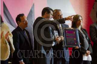 CIUDAD DE MÉXICO, 10MARZO2016.- El titular del InfoDF Mucio Israel Hernández, y Miguel Ángel Mancera, Jefe de Gobierno de la Ciudad de México, durante la entrega de los reconocimientos de transparencia y protección de datos, en el Antiguo Colegio de Medicina. FOTO: MOISÉS PABLO /CUARTOSCURO.COM