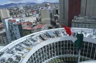 CIUDAD DE MÉXICO, 10MARZO2016.- Cielos despejados en algunas zonas de la ciudad por los fuertes vientos aunque con un clima variante, que va del sol a la lluvia, todo esto debido a la entrada del frente frío no. 44. En la imagen, la bandera en el asta del Senado de la República. FOTO: ADOLFO VLADIMIR /CUARTOSCURO.COM