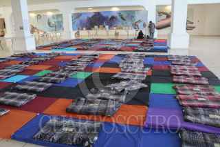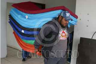 CIUDAD NEZAHUALCOYOTL, ESTADO DE MÉXICO,, 10MARZO2016.- Debido al mal clima el gobierno de Ciudad Nezahualcoyotl habilitó albergues temporales en el municipio, en la imagen trabajadores apoyan a instalan dicho refugio en el Centro Cultural Plurifuncional ubicado en la colonia Ampliación Vicente Villada. FOTO: SAÚL LÓPEZ /CUARTOSCURO.COM