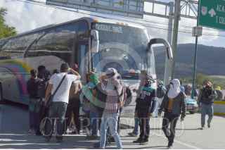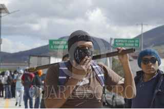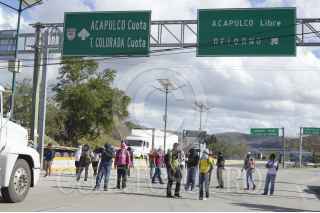 CHILPANCINGO, GUERRERO, 10MARZO2016.- Estudiantes de cuarto año de la normal rural "Raúl Isidro Burgos" de Ayotzinapa bloquearon la Autopista del Sol para exigir el pago de tres meses de becas de apoyos de la práctica intensiva del servicio social, que les adeuda a 119 normalistas la Secretaría de Educación Guerrero (SEG) y la Secretaría de Finanzas. FOTO: JOSÉ I. HERNÁNDEZ / CUARTOSCURO.COM