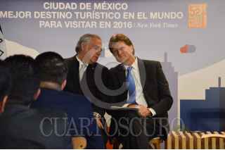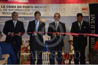 CIUDAD DE MÉXICO, 10MARZO2016.- Miguel Ángel Mancera, jefe de Gobierno de la Ciudad de México; Miguel Torruco Márques, secretario de Turismo de la Ciudad de México; Enrique de la Madrid Cordero, secretario de Turismo y José Antonio Pérez Antón, director general de ADO, encabezaron la inauguración de la exposición CDMX en Punto México, la apertura del Espacio Digital de Información Turística, al termino del evento dieron el banderazo de salida de la nueva ruta “Moda y Estrellas del Turibús, la cual recorrerá la recién re-modelada avenida Presidente Masaryk. FOTO: GALO CAÑAS /CUARTOSCURO.COM