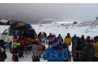 AMECAMECA, ESTADO DE MÉXICO, 11MARZO2016.- Personal de Protección Civil de Amecameca, rescatistas de la Cruz Roja y Policías de Alta Montaña apoyaron el rescate del cuerpo de un ciudadano norteamericano que sufrió un infarto cuando intentaba subir a las faldas del volcán Iztlacciuatl acompañado de un grupo de alpinistas. FOTO: PC AMECAMECA /CUARTOSCURO.COM