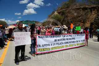 TIERRA COLORADA, GUERRERO, 11MARZO2016.- Pobladores de la entidad bloquearon la Autopista del Sol para exigir al presidente municipal, Leonel Leyva Muñoz, que la policía Comunitaria del Frente Unido para la Seguridad y Desarrollo del Estado de Guerrero (FUSDEG) estén coordinados con la policía municipal para realizar actividades de vigilancia y seguridad en conjunto. FOTO: JOSÉ I. HERNÁNDEZ / CUARTOSCURO.COM