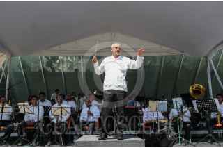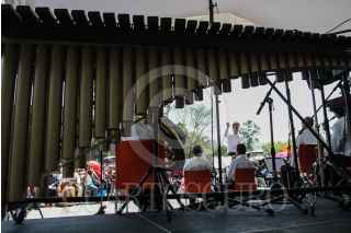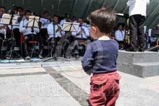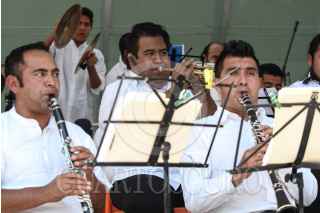 CIUDAD DE MÉXICO, 12MARZO2016.- Ante decenas de espectadores la Banda Mixe de Oaxaca ofreció un concierto "Acid Brass" en la explanada del Museo Universitario Arte Contemporáneo (MUAC) con motivo de la exposición del británico Jeremy Doller que se exhibe en el recinto cultural. Mañana se presentarán nuevamente y de forma gratuita en La Casa del Lago. FOTO: MARÍA JOSÉ MARTÍNEZ /CUARTOSCURO.COM