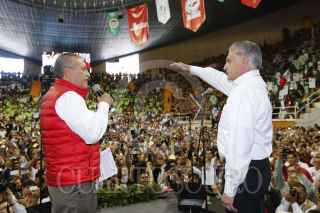 CHIHUAHUA, CHIHUAHUA, 12MARZO2016.- Manlio Fabio Beltrones R., presidente del Comité Ejecutivo Nacional del PRI, en la toma de protesta de Enrique Serrano Escobar como candidato del PRI a la gubernatura del estado de Chihuahua, realizada en el “Gimnasio Manuel Bernardo Aguirre" FOTO: CUARTOSCURO.COM