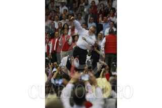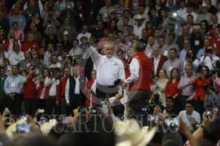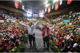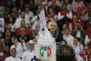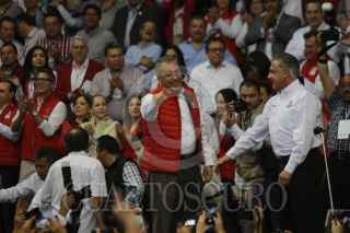 CHIHUAHUA, CHIHUAHUA, 13MARZO2016.- El día de ayer el dirigente nacional del PRI, Manlio Fabio Beltrones tomó la protesta a Enrique Serrano como candidato del PRI a la gubernatura. El evento se desarrolló en el Gimnasio Manuel Bernardo Aguirre en donde se concentraron los delegados priístas de todo el estado. FOTO: NACHO RUIZ /CUARTOSCURO.COM
