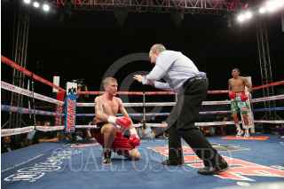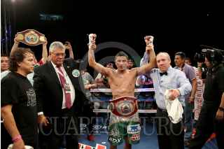 MÉRIDA, YUCATÁN, 13MARZO2016.- Sin emplearse al máximo, el cancunense Miguel "Alacrán" Berchelt despachó por nocaut en sexto round a un limitado inglés Geroge Jupp, para ceñirse el campeonato interino de peso súperpluma de la Organización Mundial de Boxeo (OMB). FOTO: FRANCISCO BALDERAS /CURTOSCURO.COM