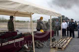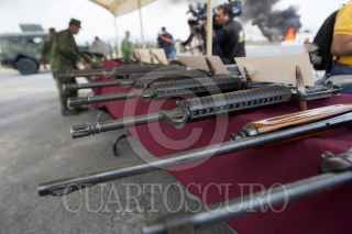 ESCOBEDO, NUEVO LEÓN, 16MARZO2016.- La Delegación de la Procuraduría General de la República (PGR) en el estado en coordinación con la SEDENA, incineraron más de 4 toneladas de droga relacionados con 88 expedientes y destrucción de material bélico, en las instalaciones de la Séptima Zona Militar. Los enervantes: marihuana, cocaína, heroína, metanfetamina, entre otros. Armamento destruído: más de 200 armas largas, armas cortas, cargadores, entre otros. FOTO: GABRIELA PÉREZ MONTIEL / CUARTOSCURO.COM