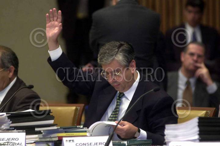Gilberto Rincón Gallardo, presidente del partido de la rosa, en el salón de sesiones del IFE a la espera de la votación que decidirá si se mantiene el registro electoral de su partido. FOTO: Pedro Mera/CUARTOSCURO.COM