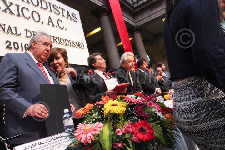 CIUDAD DE MÉXICO, 16MARZO2016.- Isaura Fuentes García, cartonista, premiada con Mención Honorífica, en el Premio Nacional de Periodismo. Olegario Vázquez Raña, presidente del Grupo Ángeles, y Moris Sallloum, presidente del Club de Periodistas, encabezaron la entrega del Premio Nacional e Internacional de Periodismo en el recinto localizado en el Centro Histórico. En el discurso inaugural mencionaron la fuerte crisis de desaparición forzada que padece el país. FOTO: MARÍA JOSÉ MARTÍNEZ /CUARTOSCURO.COM