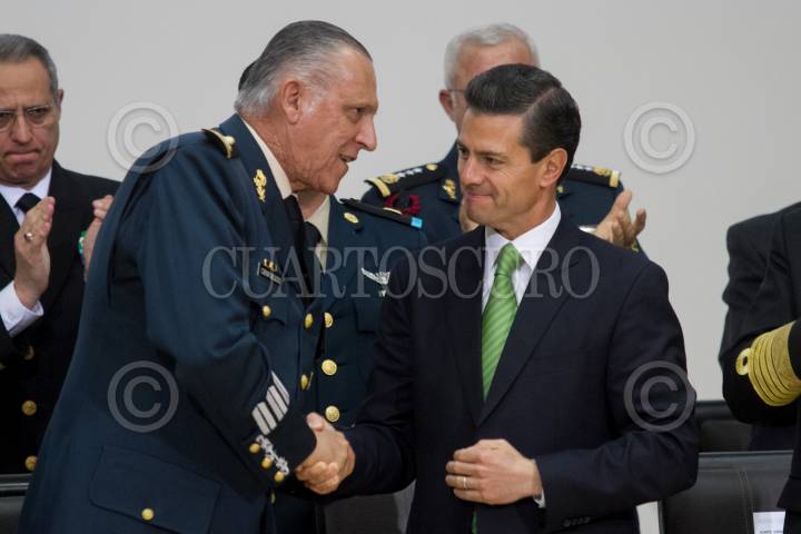 CIUDAD DE MÉXICO, 16MARZO2016.- Salvador Cienfuegos Zepeda, secretario de la Defensa, Enrique Peña Nieto, Presidente de la República, y Vidal Francisco Soberón Sanz, secretario de la Marina, durante la ceremonia del Centro de Detección oportuna de Cáncer de Mama y del Centro Militar de Ciencias de la Salud. FOTO: MOISÉS PABLO /CUARTOSCURO.COM