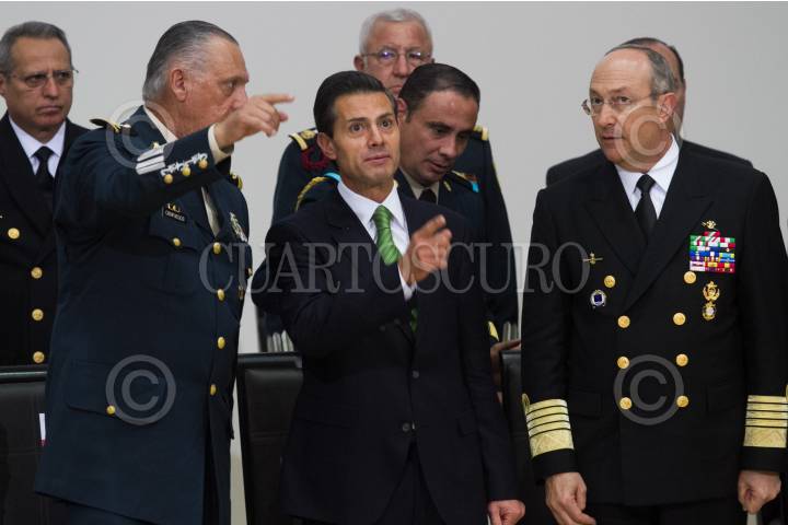 CIUDAD DE MÉXICO, 16MARZO2016.- Salvador Cienfuegos Zepeda, secretario de la Defensa, Enrique Peña Nieto, Presidente de la República, y Vidal Francisco Soberón Sanz, secretario de la Marina, durante la ceremonia del Centro de Detección oportuna de Cáncer de Mama y del Centro Militar de Ciencias de la Salud. FOTO: MOISÉS PABLO /CUARTOSCURO.COM